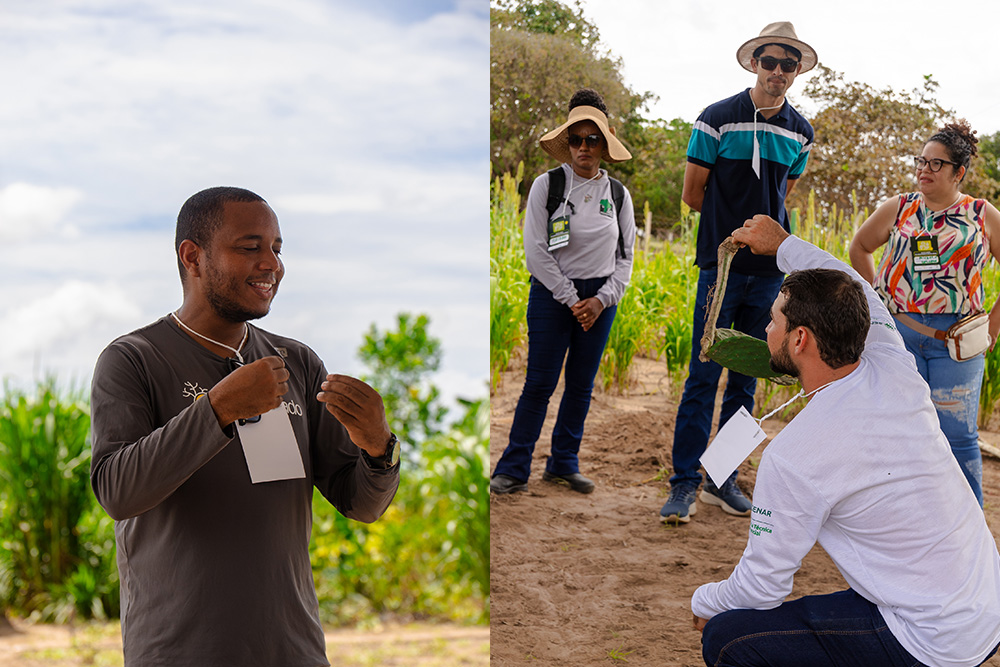 A programação foi estruturada em cinco estações práticas, onde os participantes puderam vivenciar diferentes técnicas e abordagens produtivas. Entre os temas apresentados, estiveram a restauração do Cerrado e coleta de sementes, o manejo de solo, a nutrição e sanidade animal e o Sistema Agroflorestal (SAF), destacado como uma alternativa sustentável que integra produção agrícola e conservação ambiental, promovendo a diversificação da produção e da renda.